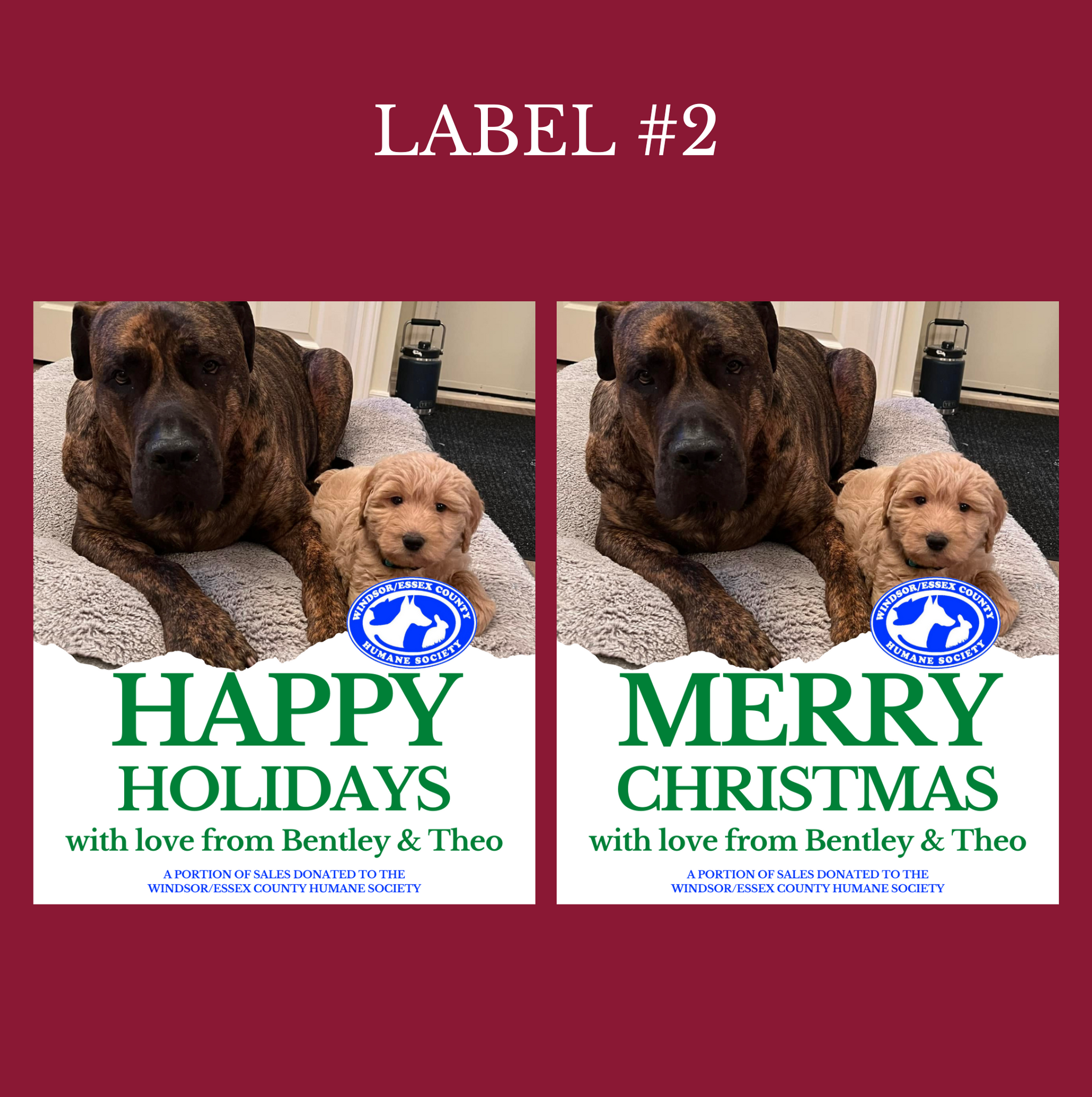 Labels are customizable! Add your pet's photo, name and choose the seasonal greeting you want on the label (Merry Christmas or Happy Holidays)